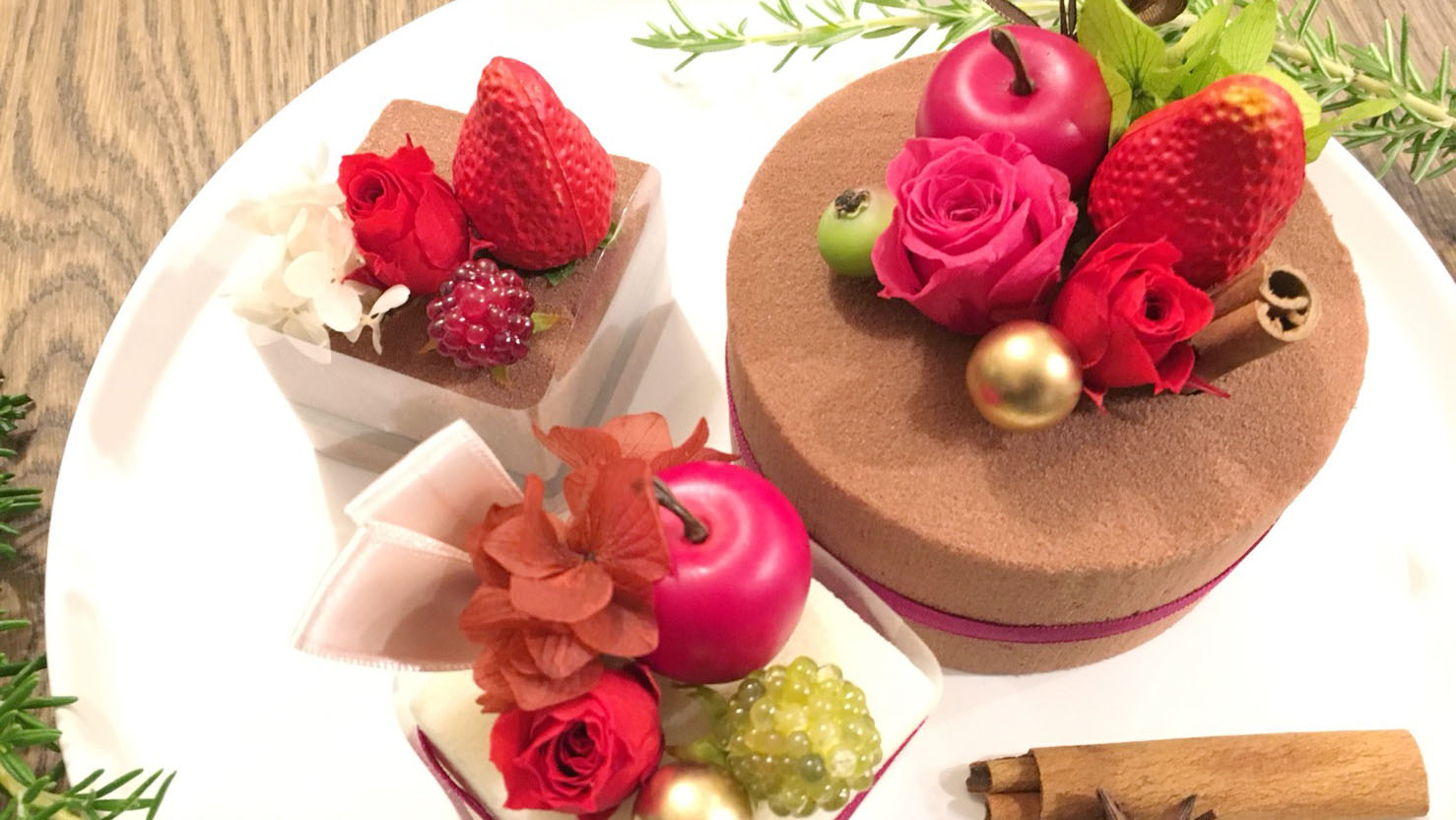 人気のプリザーブドフラワーを、スポンジケーキに見立てたオアシスの上にデコレーションしてオリジナルのプリザケーキを作成します。